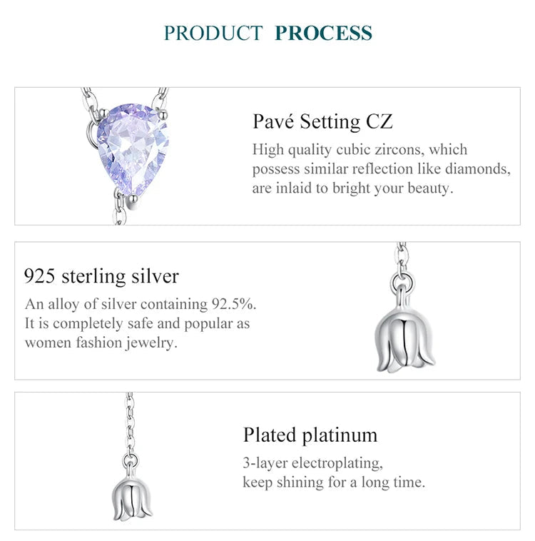 Bamoer 925 Sterling Silver Purple Zircon Lily of the Valley Pendant Necklace Elegent Neck Chain for Women Fine Jewelry BSN271 Mirror Quenn